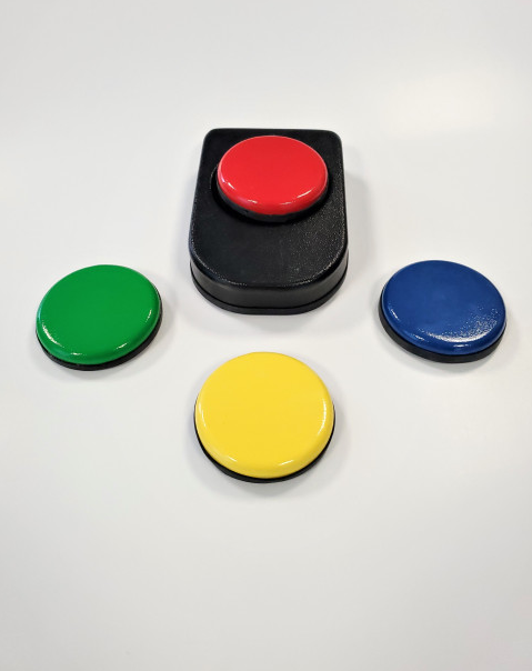 Кнопка-игровой коммуникатор предназначена для улучшения качества общения и коммуникации детей, имеющих проблемы со слуховым, зрительным, тактильным восприятием. Представляет собой компактный корпус с большой кнопкой, предназначенной для записи и воспроизведения сообщений. Диаметр кнопки позволяет использовать представленное устройство незрячим людям, также хорошо подойдёт для тех, кто имеет нарушения опорно-двигательного аппарата и нуждаются в большой целевой площади. Устройство изготовлено из высококачественного ударопрочного пластика, имеет обтекаемые плавные формы без острых краёв и углов.