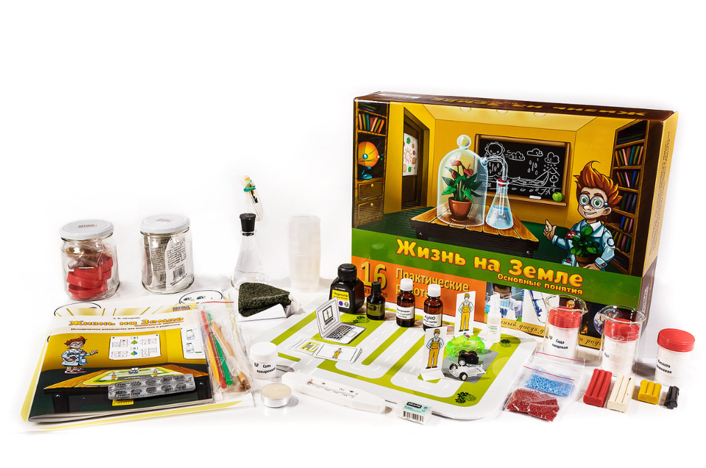 Задача набора — формирование у детей базовых понятий, без которых невозможно понимание сущности живого. С помощью моделей, карточек и реактивов, входящих в набор, ребенок познакомится с такими определениями, как виды полей, гравитация, электризация, узнает, как происходит взаимодействие заряженных тел и что вещества состоят из частиц, разберется со строением клеток, атомов и молекул, проведет практические работы по изучению фотосинтеза и дыхания.