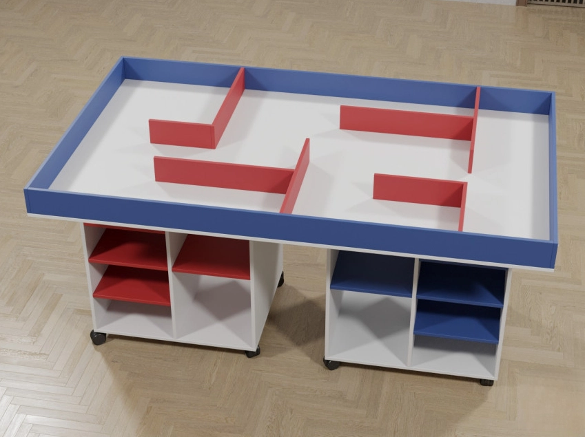 Представленный стол предназначен для специализированных учреждений, которые проводят с детьми занятия по программе раннего конструирования. Также данный стол может быть использован для кружков по робототехнике в школах или детских садах, для занятий в реабилитационных и коррекционных центрах.