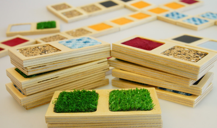 - Набор методических материалов "Тактильное домино" - «Тактильное домино» предназначено для обучающих занятий с детьми дошкольного возраста, помогает ощутить разные фактуры предметов, их цвет, тактильные ощущения. Работа с набором учит детей групповой игре и взаимодействию в коллективе, тренирует зрительную память, развивает тактильное восприятие и пространственное мышление, а также помогает детям анализировать и сравнивать.