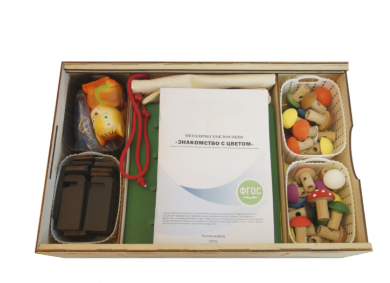 Комплект «Знакомство с цветом» является одним из составляющих наборов, который входит в группу методических материалов для дошкольников по развитию и коррекции детского восприятия. Цвет – это, то свойство окружающего мира, которое первым обращает на себя внимание. Сенсорными эталонами в области восприятия цвета служат хроматические (красный, оранжевый, жёлтый, зелёный, голубой, синий, фиолетовый) и ахроматические цвета (белый, чёрный, оттенки серого). Знакомство детей с цветом начинается с четырёх основных цветов: красный, жёлтый, зелёный, синий. Только после того, как дети научатся узнавать эти цвета, различать их и называть, можно знакомить их с белым, чёрным, оранжевым и фиолетовым цветами. Данный набор «Знакомство с цветом» представляет собой комплекс из методических материалов и наглядного инструментария для эффективных обучающих занятий.
