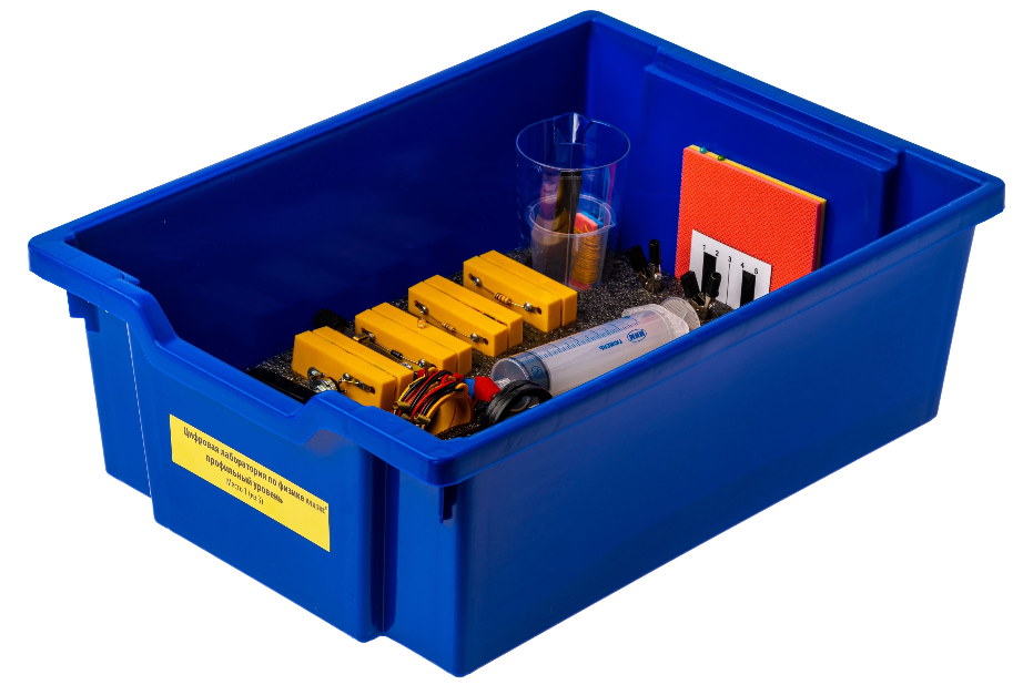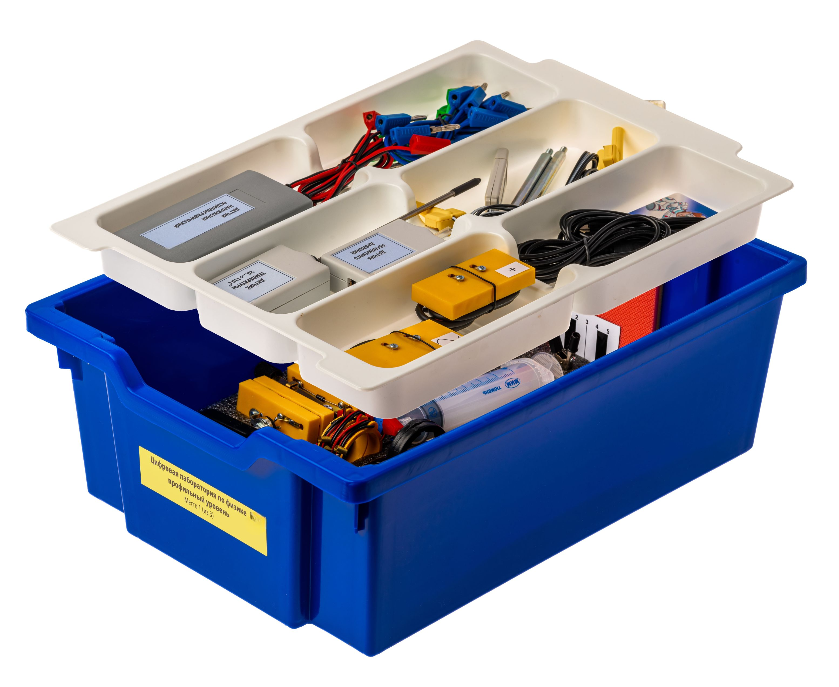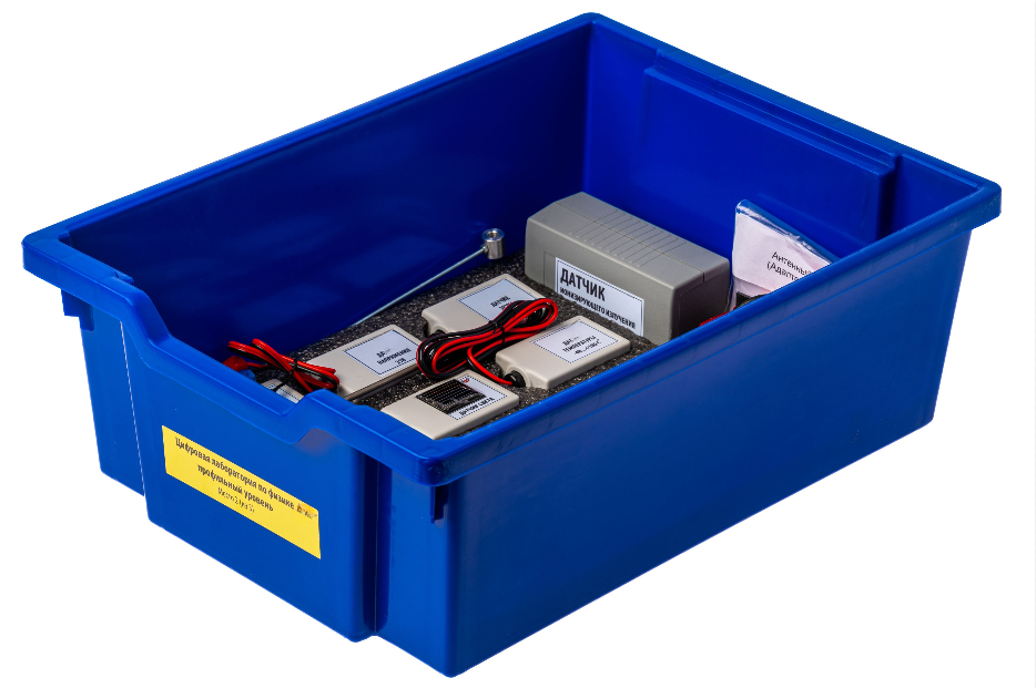 Все оборудование цифровой лаборатории (кроме скамьи лабораторной) укомплектовано в системы хранения, которые закрываются прозрачной пластиковой крышкой на защелках для обеспечения наблюдения за содержимым. Комплект оборудования и датчики в системе хранения располагаются на ложементах в индивидуальных ячейках.