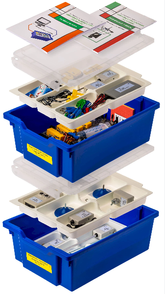 Все оборудование цифровой лаборатории (кроме скамьи лабораторной) укомплектовано в пластиковые системы хранения, которые закрываются прозрачной пластиковой крышкой на защелках для обеспечения наблюдения за содержимым. Комплект оборудования и датчики в системах хранения располагаются на ложементах в индивидуальных ячейках.