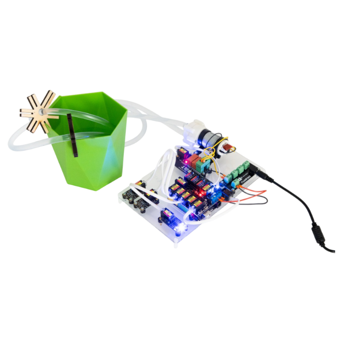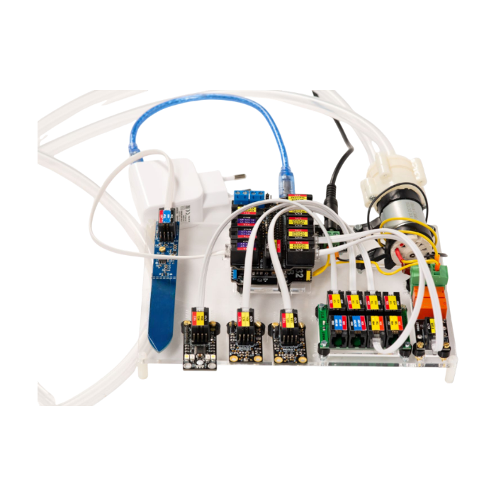 Образовательный набор «Стартовый ЙоТик М4» предназначен для начального уровня обучения по основным понятиям технологии «Интернет вещей» (IoT) в концепции «Умное сельское хозяйство» для изучения базовых функций для выращивания: автополив, умное освещение, мониторинг данных.