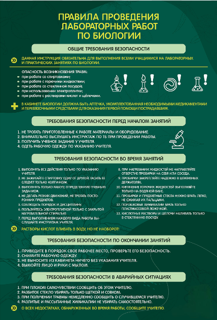 Стенд "Правила выполнения лабораторных работ по биологии" Вариант 1 - fgospostavki.ru - Сергиев Посад