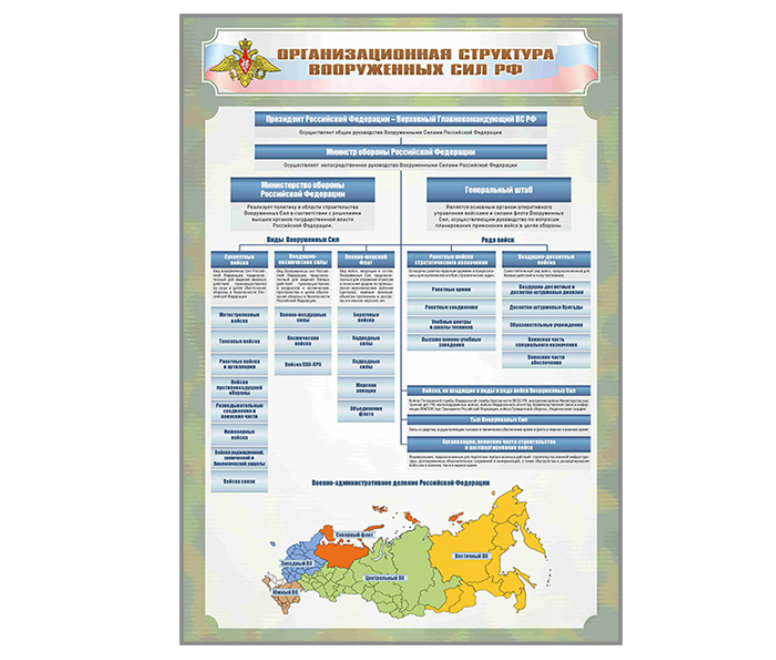Главная Каталог Стенды Кабинеты ОБЖ и НВП Стенд "Организационная структура Вооруженных сил Российской Федерации"