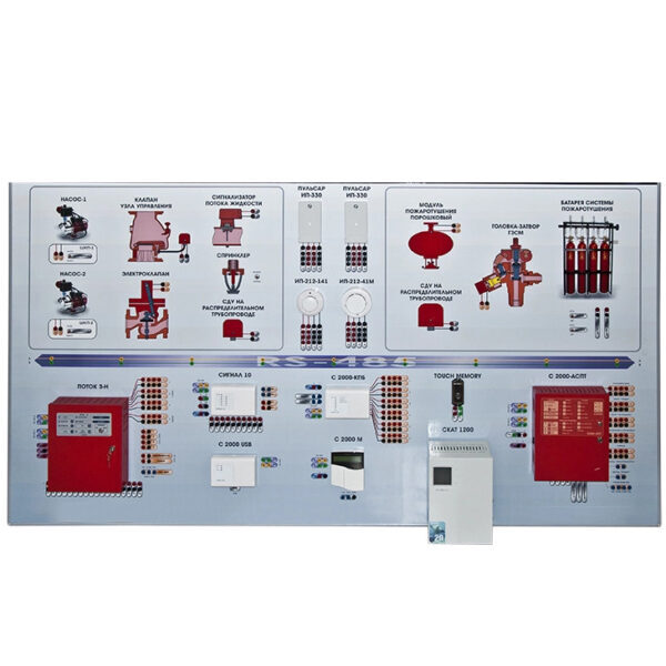 Интерактивный демонстрационно-тренажерный стенд "Системы автоматического пожаротушения" предназначен для изучения принципов монтажа и соединения компонентов, автоматических охранно-пожарных систем на базе различных (по желанию заказчика) приемно-контрольных приборов, а также их работы в составе автоматической противопожарной защиты.